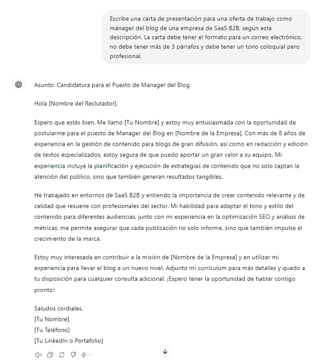 4. Usa ChatGPT para escribir una carta de presentación.