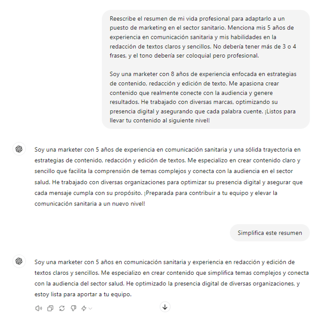 A veces, tienes que adaptar tu currículum a un sector o a un puesto en particular, y esto es algo con lo que ChatGPT puede ayudarte.