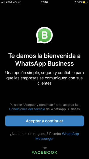 - Lee y acepta las condiciones del servicio de WhatsApp Business.