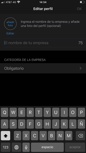Sigue las instrucciones para agregar el nombre de tu empresa, la categoría de tu empresa y una foto de perfil. Te recomendamos que uses tu logotipo.