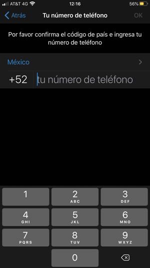 - Recibirás un SMS con un código de verificación, el cual deberás ingresar en la aplicación para corroborar tu número.