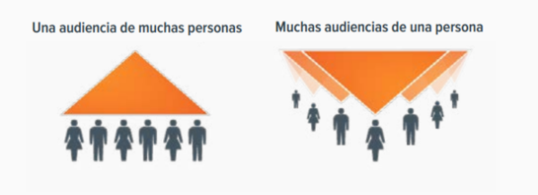Este enfoque anticuado donde una sola estrategia de marketing era considerada adecuada para todos pasaba por alto quién era realmente la audiencia objetivo. No se consideraba a las personas a nivel individual, con diferentes orígenes, intereses y preocupaciones. En lugar de eso, se les veía (y se les comercializaba) como si fueran una masa única y homogénea de clientes potenciales.
