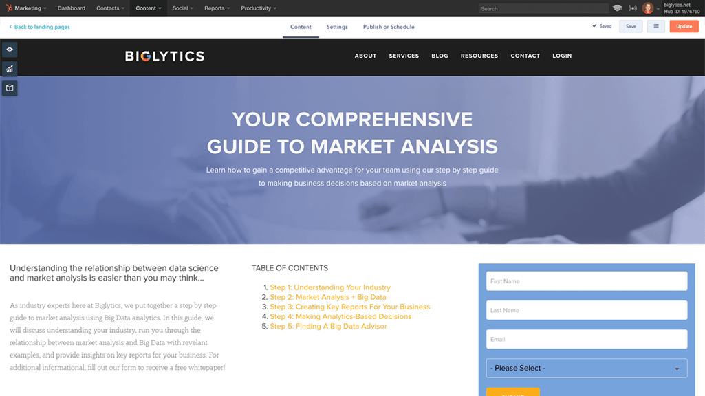 1. Creador de landing pages gratuito de HubSpot (herramienta gratuita)