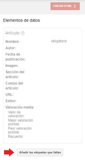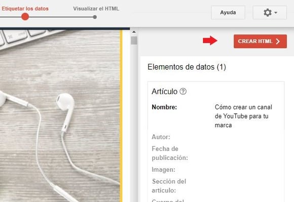 Cuando termines de etiquetar y asignar elementos de datos, haz clic en «Crear HTML» en la esquina superior derecha.