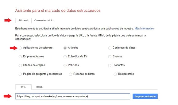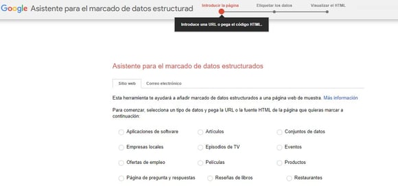 - Abre el asistente para el marcado de datos estructurados de Google.
