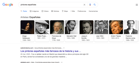 Hablemos de estas funciones, específicamente en Google. Las SERP de Google muestran una amplia variedad de información, pero las que hablaremos a continuación están específicamente influenciadas por datos estructurados.