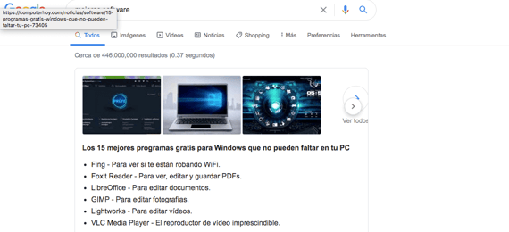 Los fragmentos destacados presentan la información relevante para una consulta y un enlace a un sitio web.