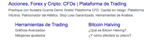 Los enlaces de sitio son enlaces adicionales que se muestran debajo de un resultado de búsqueda que navega a diferentes partes de un sitio web. Google los añade en una SERP cuando cree que los resultados adicionales beneficiarían a un buscador. Los sitios web con texto de anclaje y texto alternativo (que es informativo, compacto y evita la repetición) tienen una buena oportunidad de mostrar un resultado con los enlaces de sitio.