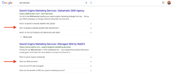 Esta característica permite a los usuarios acceder a sus preguntas y respuestas directamente desde la SERP; también extiende su resultado verticalmente, ocupando aún más espacio en la SERP, lo que ayuda a que tu sitio destaque.