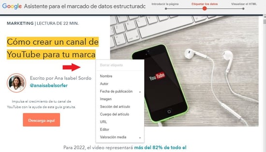 A continuación, te explicamos cómo implementar datos estructurados mediante la herramienta de ayuda para el marcado de datos estructurados de Google.
