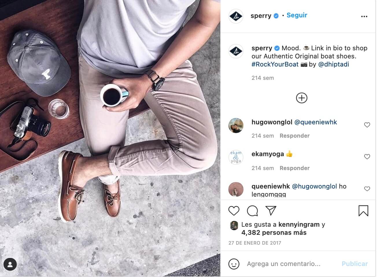 Hacia finales de 2016, la marca de calzado náutico comenzó a trabajar con más de 100 microinfluencers en Instagram, a fin de crear contenido interesante para sus seguidores. Sperry identificó que los fans de la marca ya compartían fotos de alta calidad de sus productos en Instagram y comenzó a invitarlos a desarrollar contenido visual para su cuenta oficial.
