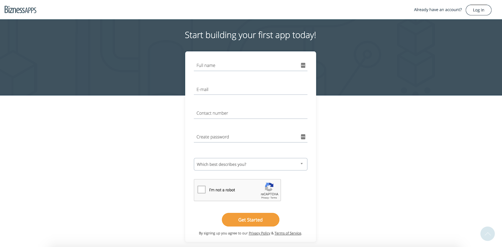 2. Registro: un formulario de registro será útil si buscas que alguien se suscriba a tu producto o servicio, o que dé de alta una prueba gratuita, por ejemplo.