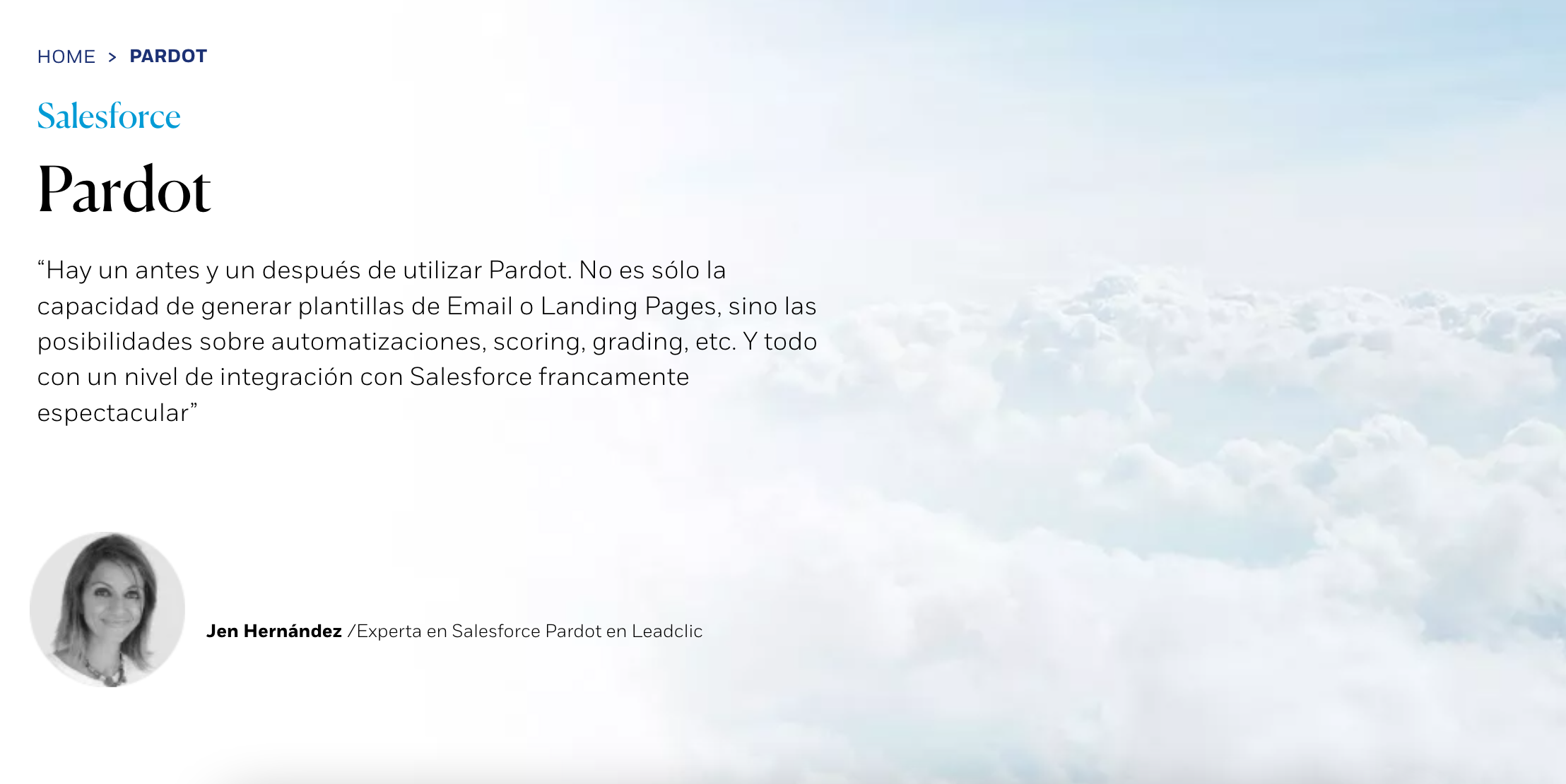 Especialmente diseñada para empresas B2B, Pardot ofrece herramientas de automatización para el manejo de leads, creación de campañas por correo, segmentación avanzada y análisis detallado del rendimiento de tus estrategias.