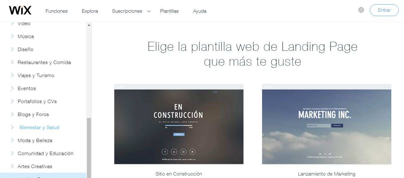 Wix es uno de los creadores de sitios web más populares, pues es fácil de usar. Cuenta con un número inmenso de plantillas que podrás editar sin dificultad gracias a su herramienta drag-and-drop. Con Wix tu creatividad es el límite, así que podrás hacer cualquier tipo de landing page con alguna de sus plantillas.