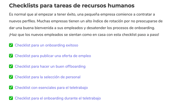 En el blog de factorialhr.es, orientado a recursos humanos, utilizan el checklist como un lead magnet, ya que la gestión de recursos humanos implica diferentes tareas dentro de un mismo departamento. Por todo esto un chekclist resulta ser una excelente guía para equilibrar muchas de las tareas y tener información sobre todo lo que se debe tener en cuenta.