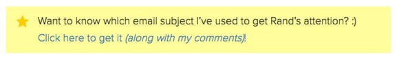 «¿Quieres saber cuál es el asunto de correo que usé para captar la atención de Rand (Fishkin)? Haz clic aquí para obtenerlo (junto con mis comentarios)».