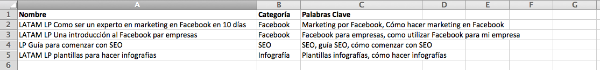 - Decide a qué categoría de palabras clave corresponde cada página y agrega esa categoría en una columna al lado del nombre de la página.