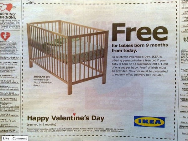 Esta idea genial de IKEA lo tiene todo: un producto gratuito más una buena dosis de humor. ¡Los niños nacidos en noviembre siempre son sospechosos!