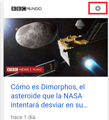 Otro beneficio de AMP es la visibilidad del contenido. El contenido con formato AMP lo puedes distinguir con el icono del rayo en los resultados de búsqueda.