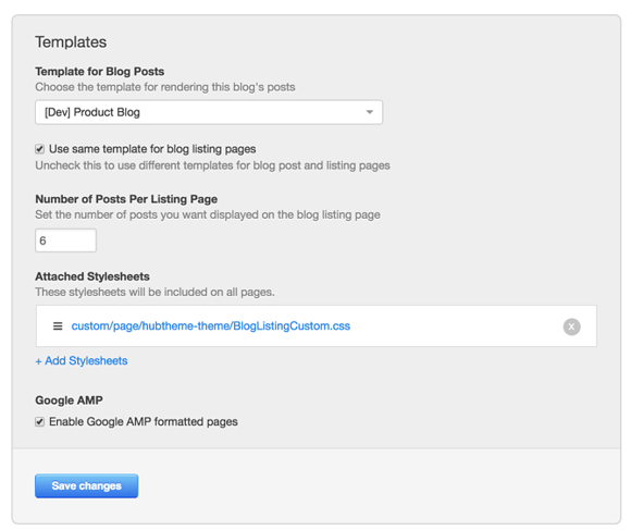 Si eres cliente de HubSpot, puedes habilitar fácilmente las entradas de tu blog con AMP con solo tocar un botón. Con esta configuración, tu equipo de blogging no tendrá que contratar a un desarrollador o aprender a codificar AMP. En su lugar, solo tienes que marcar una casilla para crear entradas de blog con formato AMP para que sean expuestas en la búsqueda móvil.