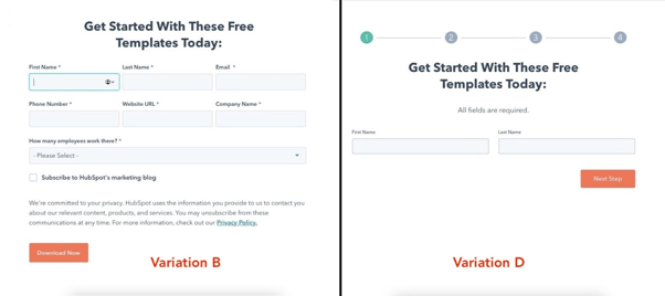 En la prueba se utilizaron cuatro variantes diferentes de formularios de registro, lo que suponía un diseño A/B/C/D/E. La imagen de abajo corresponde a la variante de control.