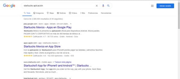 Los operadores de un sitio pueden agregar marcas de datos estructurados a su HTML para ayudar a los motores de búsqueda a comprender su sitio web y optimizarlo para obtener un fragmento enriquecido. La aplicación Starbucks, por ejemplo, incluye valoraciones de clientes y precios dentro de la descripción de búsqueda.