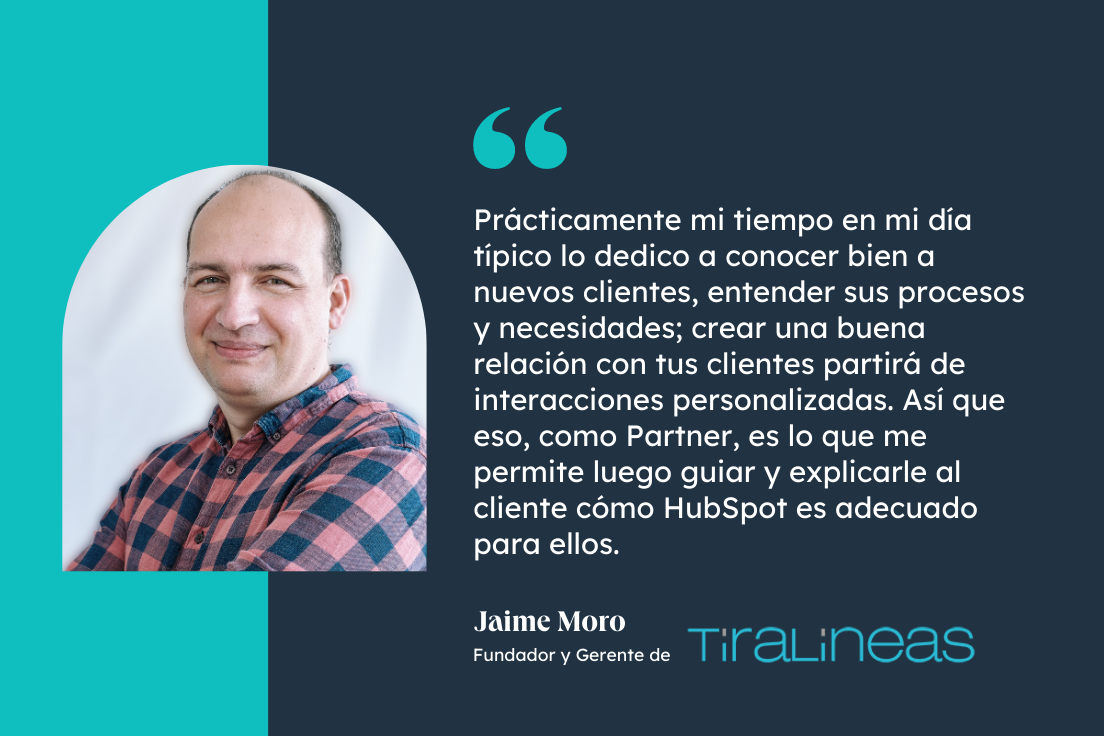 La tecnología ha cambiado la forma de hacer negocios, las estrategias de ventas han ido evolucionando y Jaime Moro nos cuenta cómo en su día a día se adapta a esos cambios como Fundador y Gerente de Tiralíneas, Solutions Partner Diamond de HubSpot y uno de sus principales integradores.