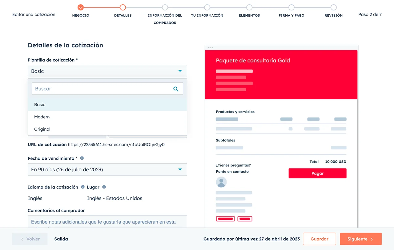 - Recibe pagos y firmas electrónicas en la misma cotización.