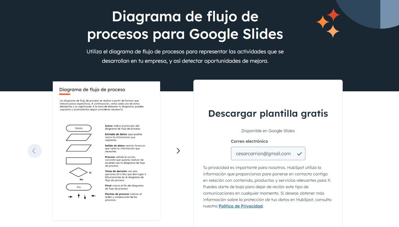 En HubSpot hemos creado una plantilla para hacer diagramas de flujo y puedes descargarla gratis. Siguiendo las indicaciones que encontrarás en el descargable, paso a paso, irás preparando tu diagrama de flujo de procesos.
