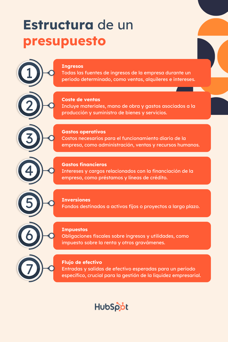 Los elementos que conforman un presupuesto pueden variar según el tipo y la complejidad de la empresa, pero generalmente incluyen ingresos, gastos, inversiones, impuestos y flujo de efectivo. Estos elementos proporcionan una visión integral de la situación financiera de la empresa y ayudan a establecer metas y tomar decisiones informadas sobre la asignación de recursos y la gestión financiera.