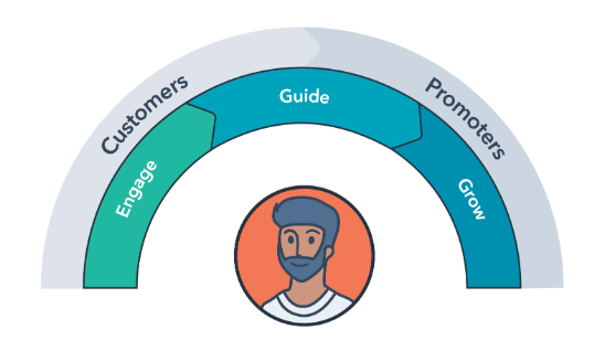La etapa de «guía» se alinea estrechamente con el servicio al cliente.