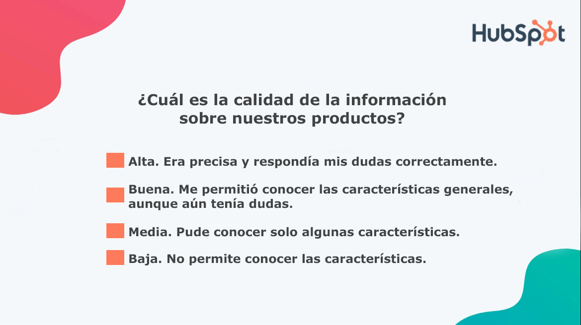 En HubSpot usamos las encuestas para crear mejoras en los productos. Para los clientes, es una forma sencilla de brindar feedback, así que es beneficioso para ambos lados.