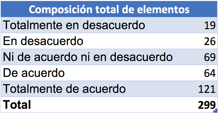 • Suma los valores de cada respuesta para conocer el grado de aceptación de cada ítem.