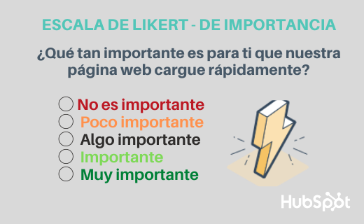 La escala de Likert mide el grado en que el encuestado está de acuerdo o en desacuerdo con cada consulta. Por ello es indispensable ofrecer respuestas de opción múltiple graduales, es decir, que vayan de lo positivo a lo negativo o viceversa (pero de forma consistente en todas las preguntas). Genera un modelo que refleje varios niveles, pero recuerda que el modelo de cinco variantes es el más utilizado.