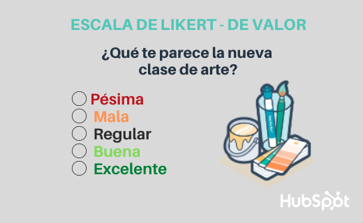 Sirve para calificar o establecer valores respecto a un objeto o servicio. Con ella el cliente refiere qué tan buena o mala es su experiencia con tu empresa de manera general. Estas preguntas de escala de Likert te arrojarán resultados tanto cualitativos cómo cuantitativos.