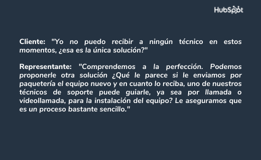 Habrá momentos en que tu propuesta no deje satisfecho al usuario. En esos casos intenta preguntarle cuál solución le parecería la indicada. Si es algo adecuado para ambas partes, acepta su idea.