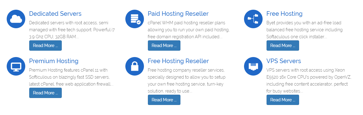Por último, podemos hablar de una de las herramientas más simples que existen de alojamiento gratuito: Byet. Con este servicio, usado por más de 1 millón de sitios, puedes tener todo lo que necesitas para almacenar los datos de tus páginas y gestionar la vida digital de tu proyecto de negocios con todas las funcionalidades básicas.