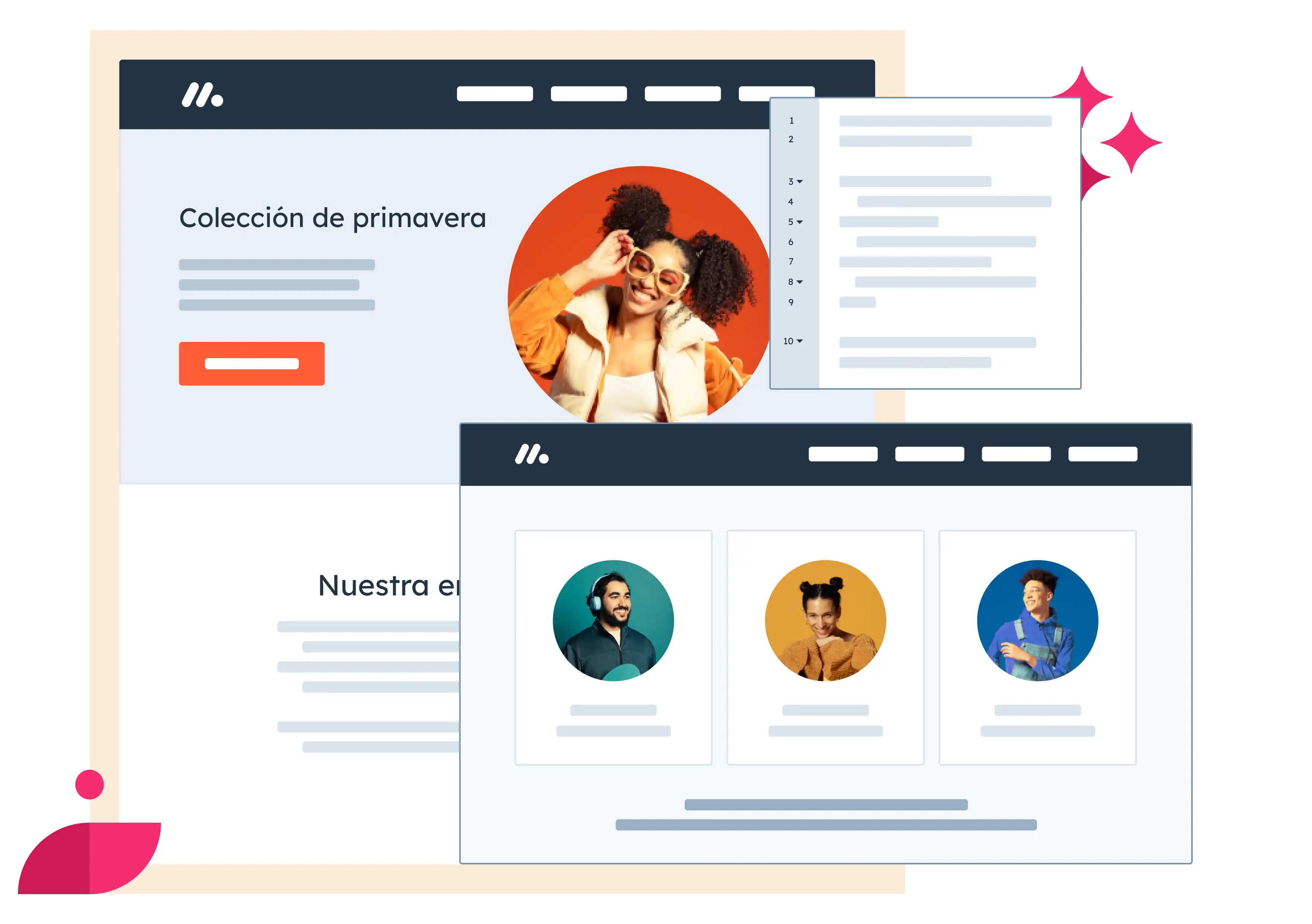 Ya conoces la importancia del SEO. CMS Hub, además de ser un gestor de contenidos, es un sistema de optimización por sí mismo. Las empresas que usan CMS Hub reportan 48 % más conversiones y 73 % reducción en tiempo de desarrollo. Hace que tus usuarios naveguen cómodamente por las páginas y te permite añadir las llamadas a la acción adecuadas, así no tendrás que preocuparte por la programación ni por los aspectos técnicos.