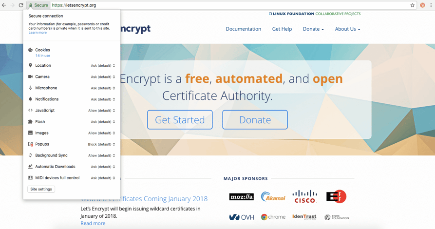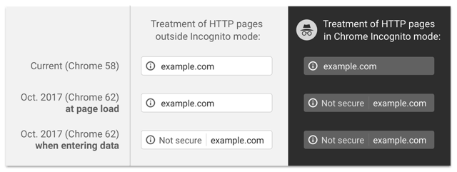 Con el lanzamiento de la versión 62 de su conocido navegador Chrome, Google introdujo las notificaciones de páginas no seguras cuando estas contienen un formulario, pero no han obtenido el certificado SSL. Chrome abarca aproximadamente el 47 % de la cuota de mercado de navegadores, por lo que cuando esta nueva versión esté disponible muchos sitios web se verán afectados de inmediato.